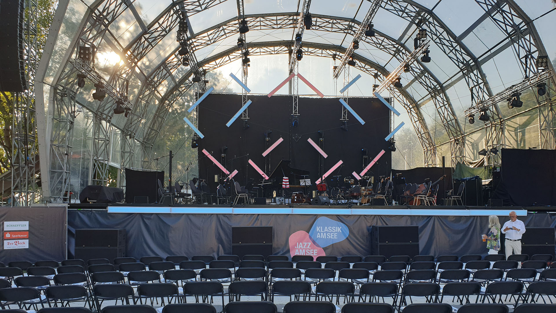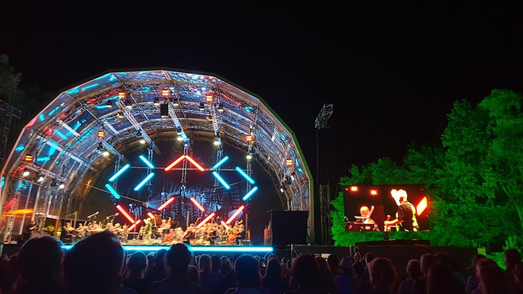 Koncert na żywo to nie to samo, co oglądanie koncertu w telewizji, nawet jeżeli ma się duży ekran i dobry sprzęt. Koncert na żywo to udział w wydarzeniu, to poczucie bliskości z artystami, to uczta dla wszystkich zmysłów. Po raz pierwszy również byliśmy częścią wielkiej widowni pod otwartym niebem, w miejscu przepięknie położonym wśród starych drzew, wzdłuż malowniczo rozciągającego się jeziora Dechsendorfer Weiher, niedaleko Erlangen. Pogoda nam sprzyjała, po upalnym letnim dniu, nadszedł gorący wieczór i gorący nastrój podsycany energetycznym wystąpieniem muzyka ze swoim zespołem i towarzyszącą orkiestrą filharmoników z Hofu.