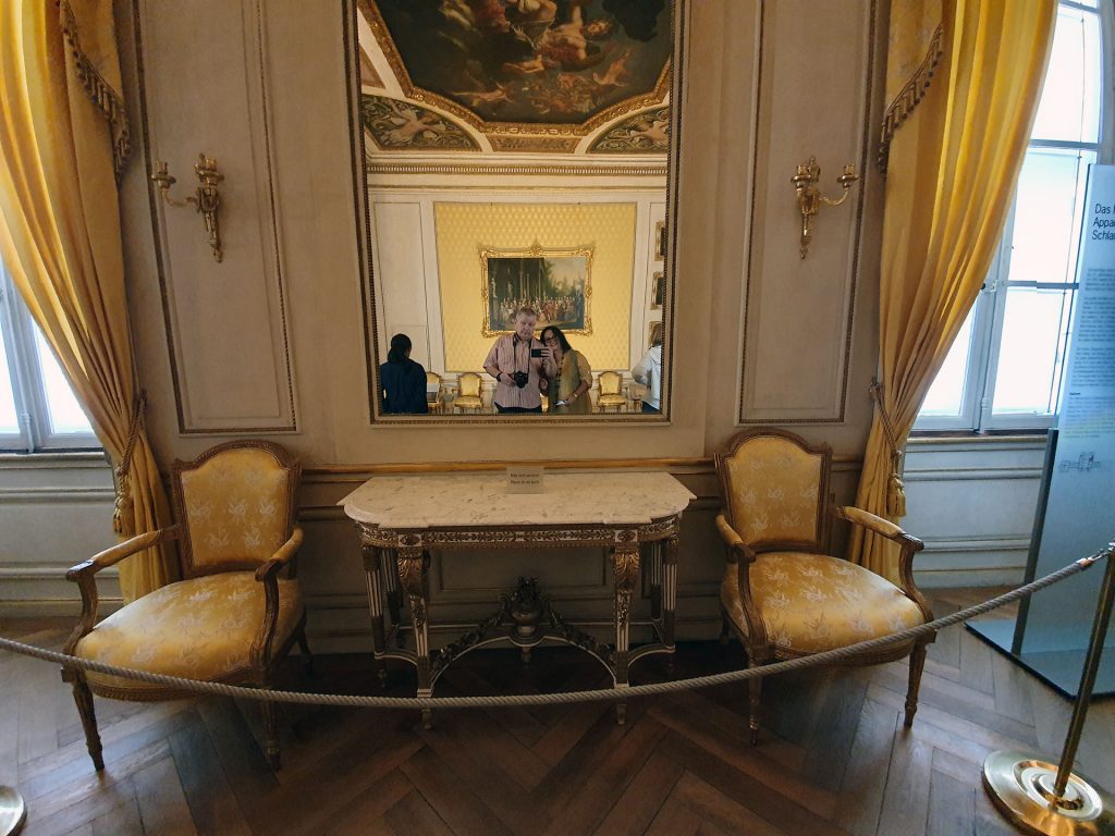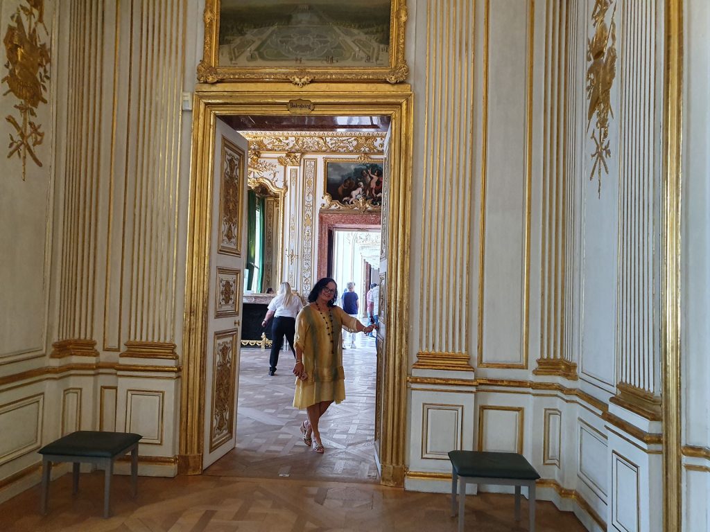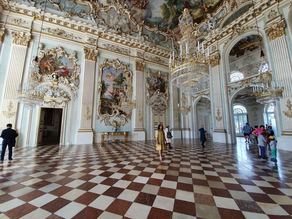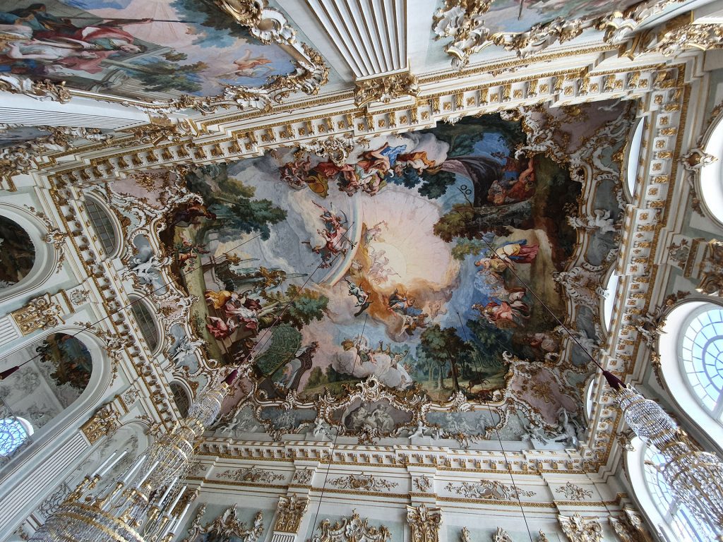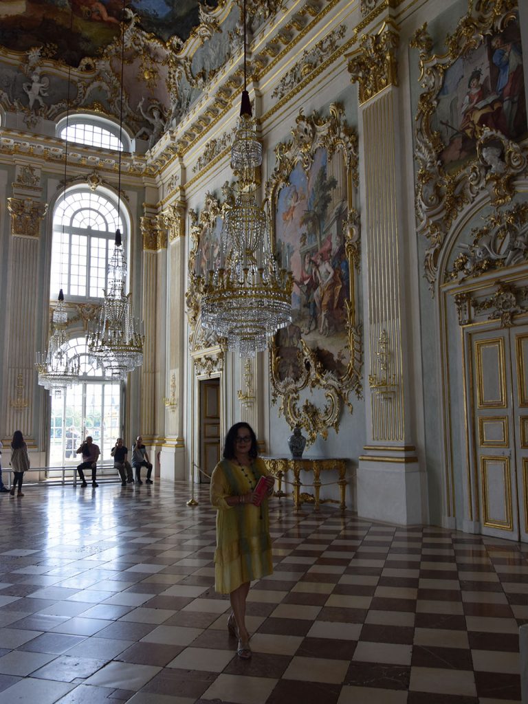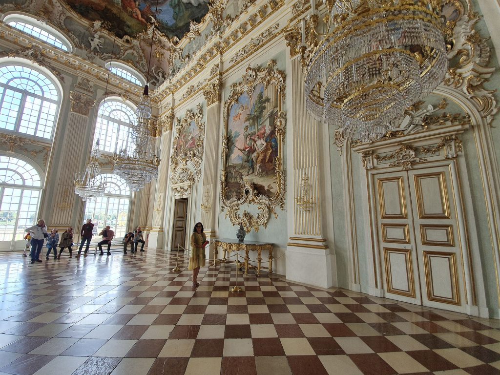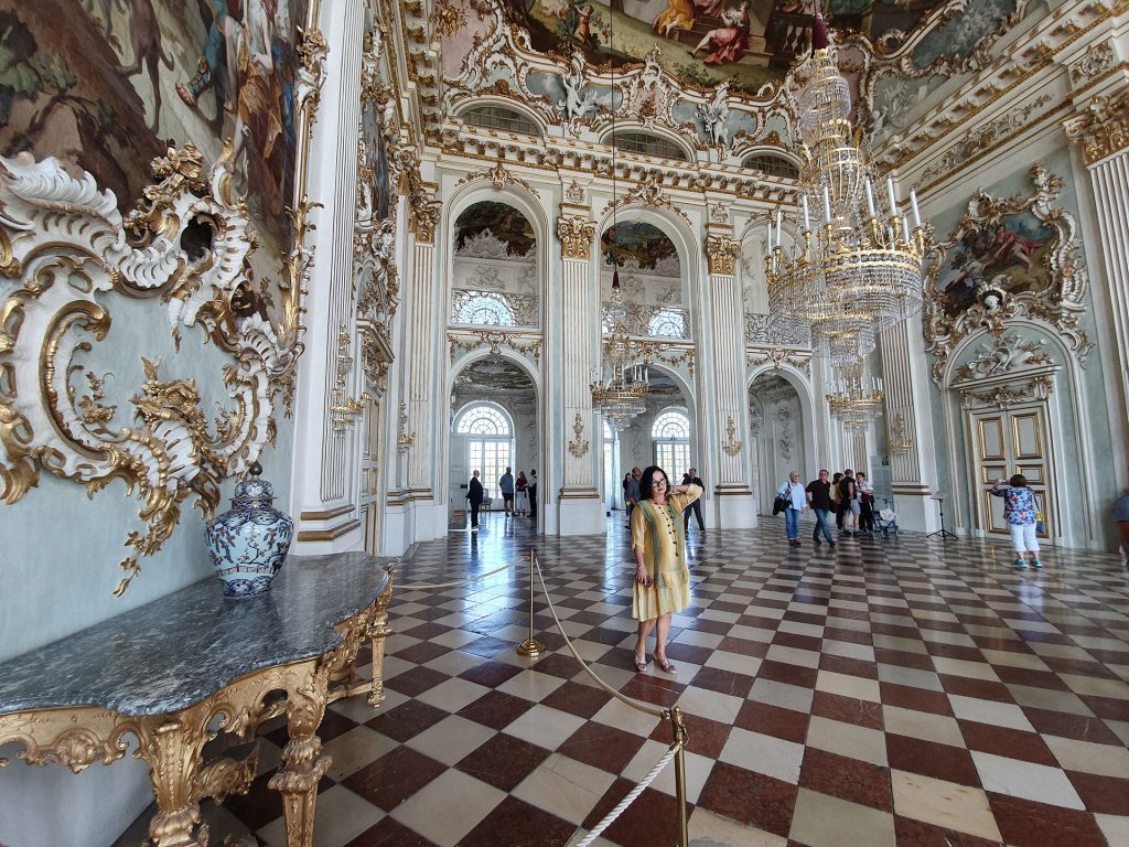 Schloß Nymphenburg to piękny zabytek o świetnie zachowanych wnętrzach, pełnych zachwycających malowideł, oryginalnych ozdób i mebli, oraz dekoracji i wyposażenia pomieszczeń zamkowych. Podczas zwiedzania wnętrz pałacu Nympheburg zwróciłam uwagę na dużą ilość pracowników muzeum, dużo więcej pilnujących niż w Wersalu. Natomiast największe wrażenie zrobiły na mnie piękne freski i ozdoby sufitów.