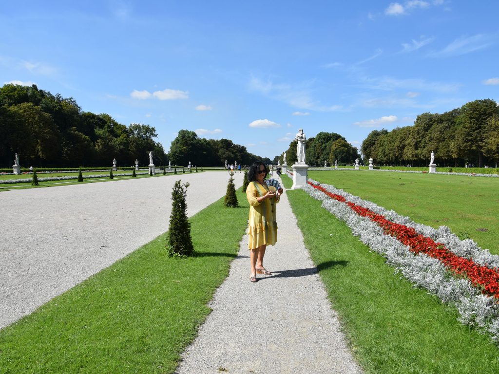 Ponieważ do München przyleciałam bardzo wcześnie, około dziesiątej, mieliśmy cały dzień na przyjemności zwiedzania miasta i okolic. Z lotniska pojechaliśmy najpierw do monachijskiej dzielnicy Neuhausen, gdzie znajduje się pałac Schloß Nymphenburg. Po śniadaniu spacerkiem udaliśmy się na zwiedzanie pałacu i przylegających ogrodów.