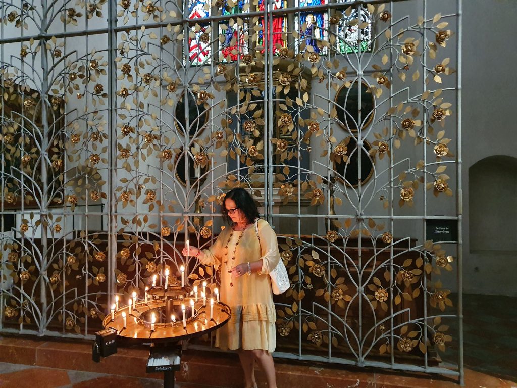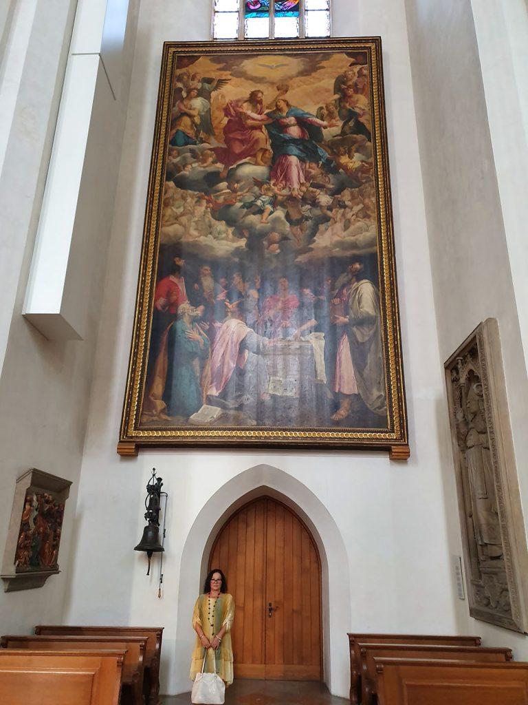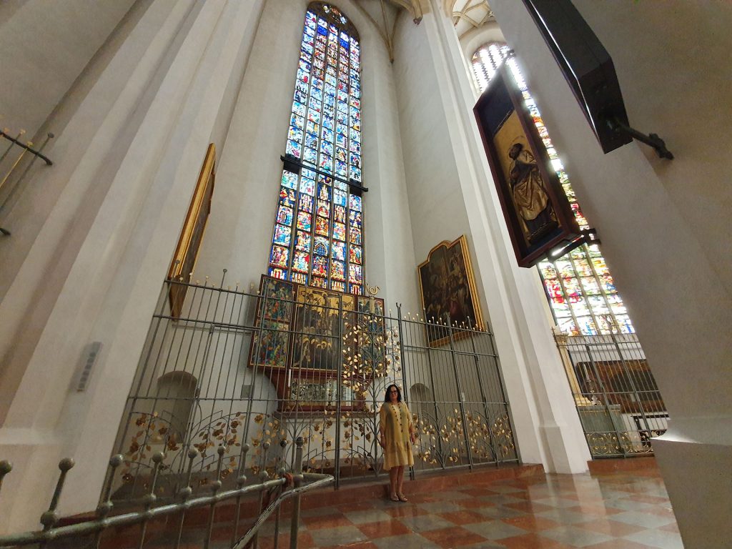 Katedra Najświętszej Marii Panny – Frauenkirche – gotycki kościół z 1468 – 1488 roku, jest inna niż wszystkie, które do tej pory widziałam. Wydawała mi się jakaś jaśniejsza, przejrzystsza, zachwyciła mnie cudnymi witrażami i obrazami, a także specyficzną atmosferą.