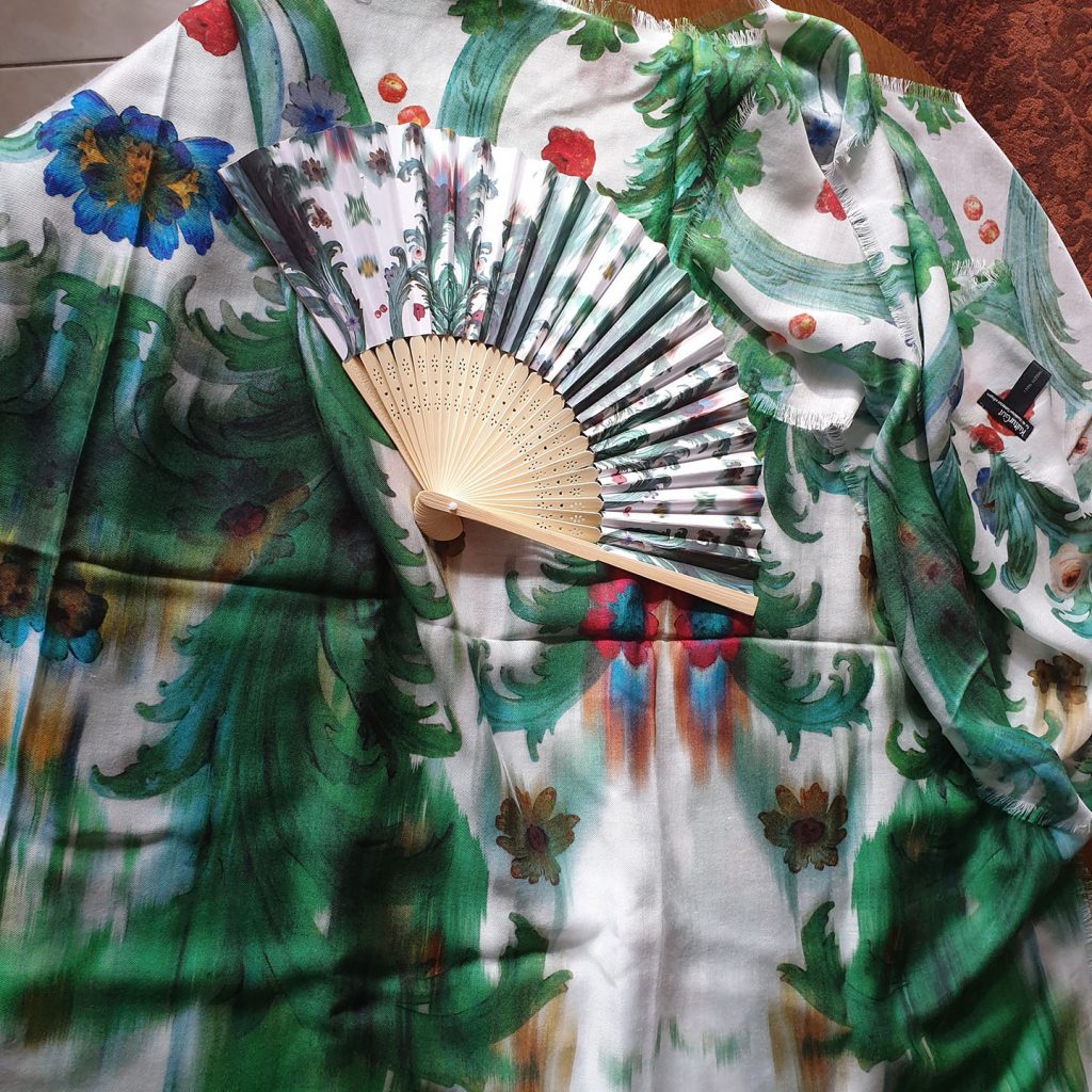 Opuszczając to piękne, pełne duchów historii miejsce, zaszaleliśmy trochę i jako pamiątkę z Nympheburga dostałam od męża piękną, ręcznie malowaną chustę z pieczęcią KulturGut (dobro kultury) i do tego wachlarz w ten sam deseń, co chusta.