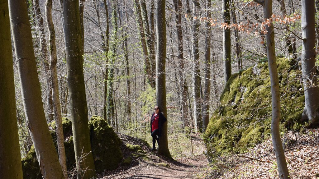 W drodze minęliśmy słynny w okolicy las, noszący nazwę „Märzenbecherwald” – od kwiatów, które w marcu pokrywają ściółkę leśną gęstym dywanem. Märzenbecher – po polsku śnieżyca wiosenna – to piękny kwiat, podobny do konwalii, jednak z żółtymi końcówkami płatków. Niestety, byliśmy za późno i kwiaty te już dawno przekwitły – było za to pełno zawilców.
